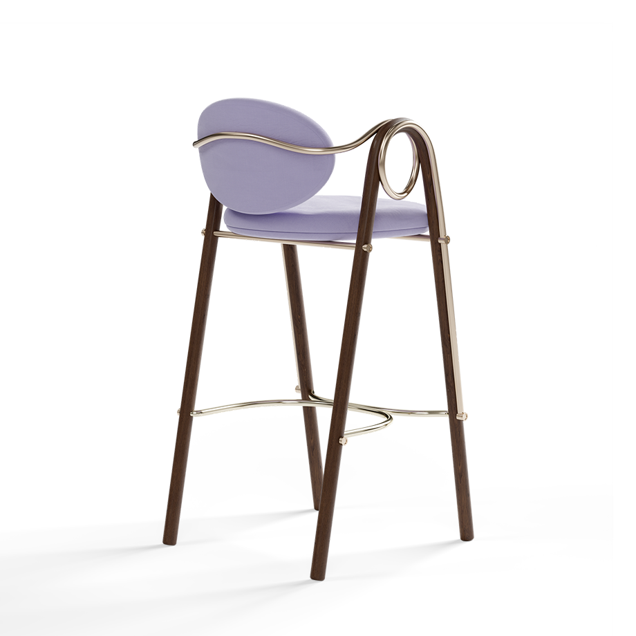 Sleek and sophisticated, the Liana Bar Chair features a curved brass frame and elegant upholstered seat, combining modern glamor with lasting comfort.